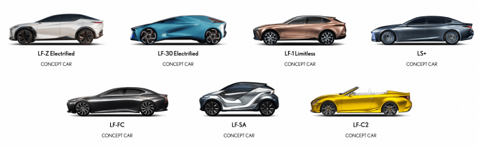 ๋ ์์ค ์ฐจ๋ ์ข ๋ฅ๋ณ ์นดํ ๊ณ ๋ฆฌ ํ : LS, ES, RX, NX, UX, CT, RC, LC, FUTURE