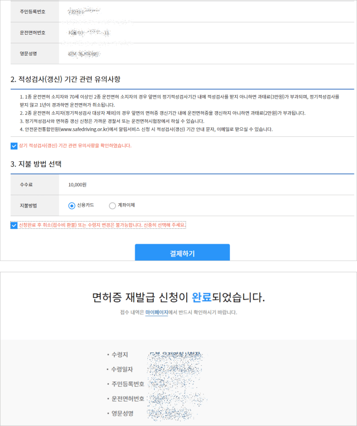 ์๋์ฐจ ์ด์ ๋ฉดํ์ฆ ์ฌ๋ฐ๊ธ ์๊ฐ : ๋ํ๋ฏผ์ ํํ์ด์ง๋ ๊ฒฝ์ฐฐ์๋ฅผ ์ ์ธํ๊ณ ์ ์๋น์ผ ๋ฐ๋ก ๋ฐ๊ธ์ด ๋ฉ๋๋ค.